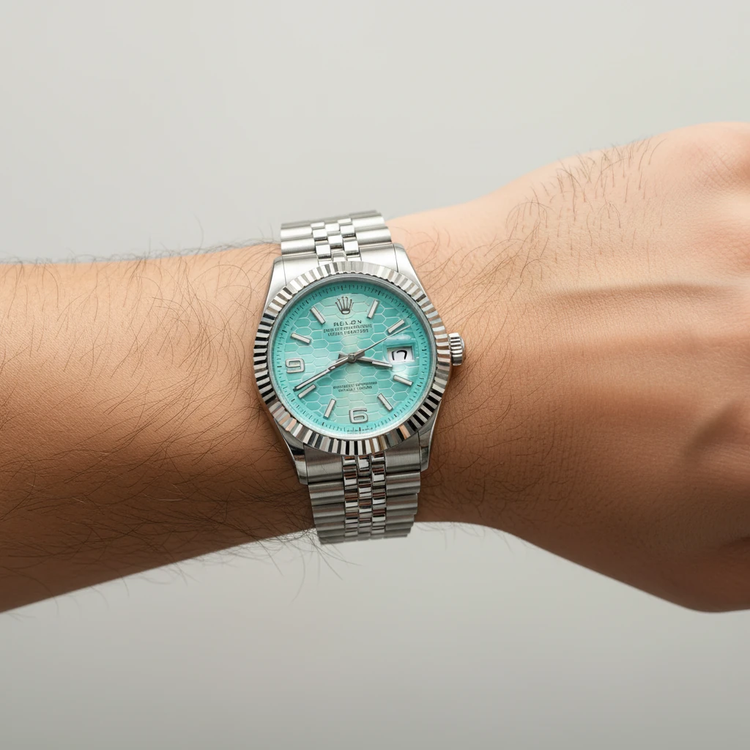 ساعتی که با یک نگاه فرقش را نشان میدهد؛ صفحه آبی یخی با طرح لانهزنبوری، ترکیب جسارت و لوکسبودن.