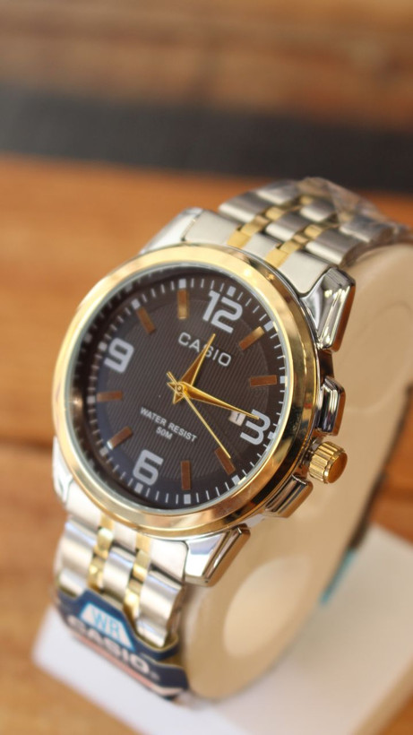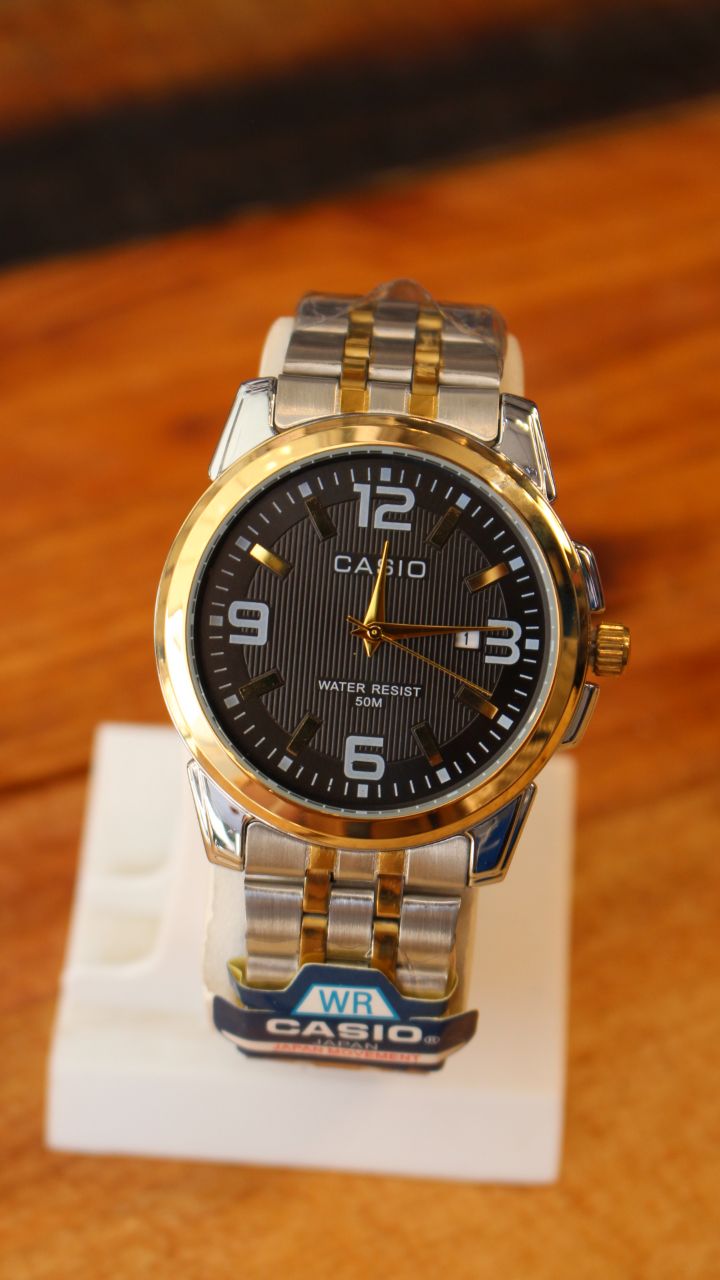 چون کاسیو یعنی دقت، دوام و اعتبار جهانی. این مدل با صفحه مشکی رسمی و ترکیب طلایی–نقرهای، ساعتی است که سالها از مد نمیافتد.