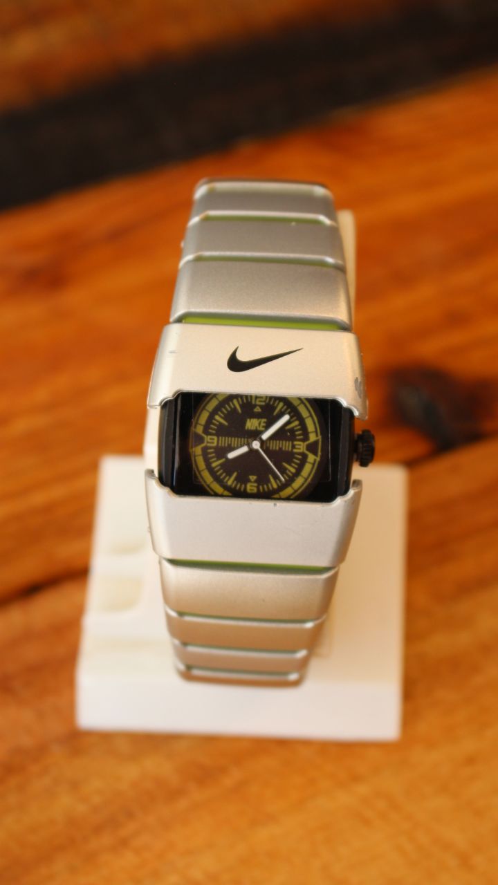 طراحی متفاوت نایکی با قاب مستطیلی مدرن و صفحه مشکی–سبز ورزشی؛ ساعتی برای کسانی که جرأت متفاوت بودن دارند.